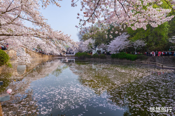 太湖畔的狂放,古典园林与漫天樱花交汇,尽显江南春日的温婉诗意。3月中旬-4月初,樱花绽放时如云似霞,满天樱花雨,溜达其中,跻身花海。长春桥畔樱花如云,还有绝好意思的夜樱可看。
